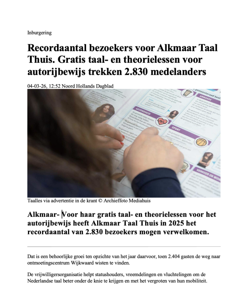 Vandaag lazen wij bijgevoegd artikel in het Noord Hollands Dagblad. Hoe mooi! We zetten ons mooie werk met liefde en plezier voort.